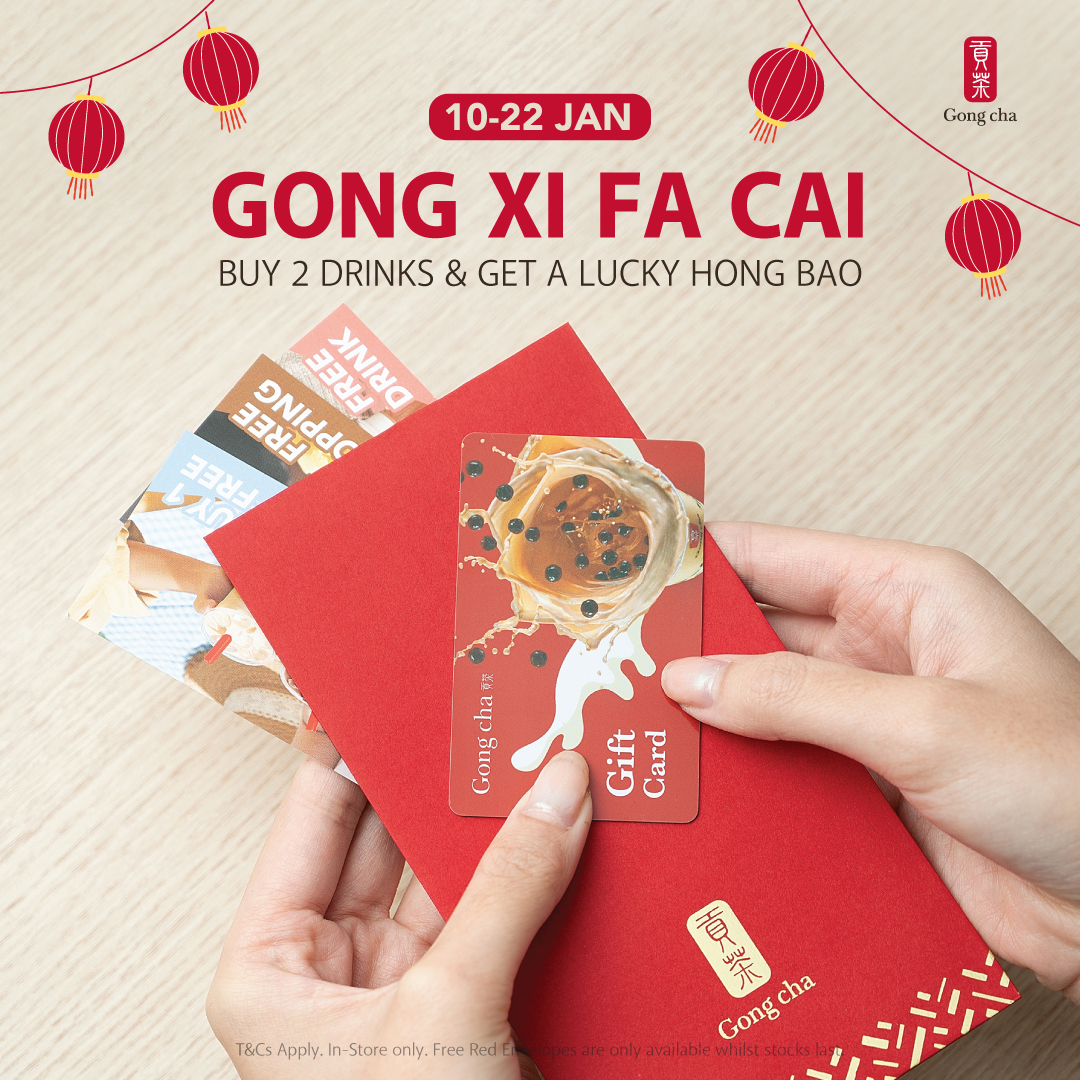 - Buy any 2 drinks and get a free lucky red envelope while stocks last.