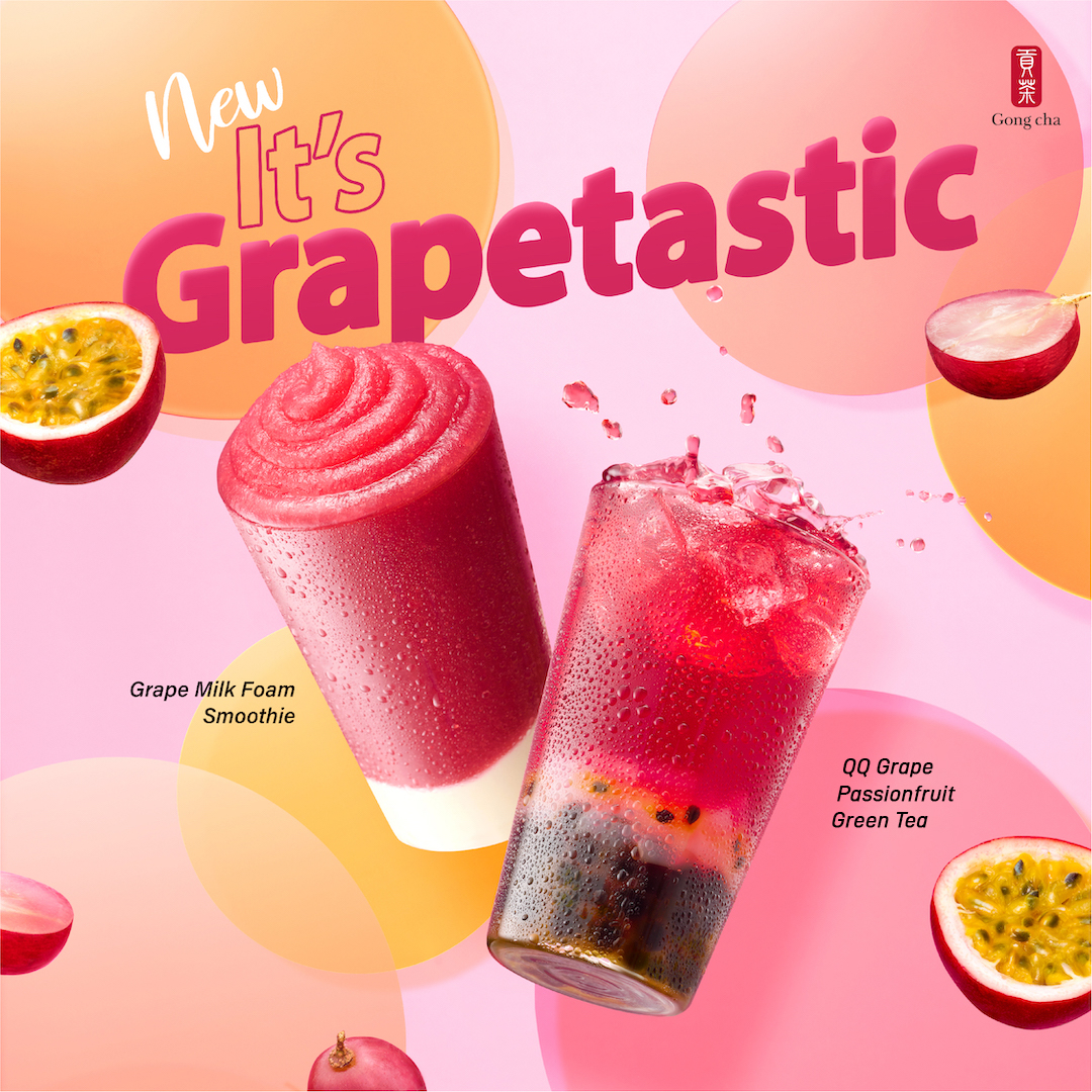 Indulge in grape goodness with the newest Grape Series featuring two amazing drinks, the Grape Milk Foam Smoothie, and the QQ Grape Passionfruit Green Tea, both adding a fun grape twist to a classic drink. It’s Grapetastic ✨