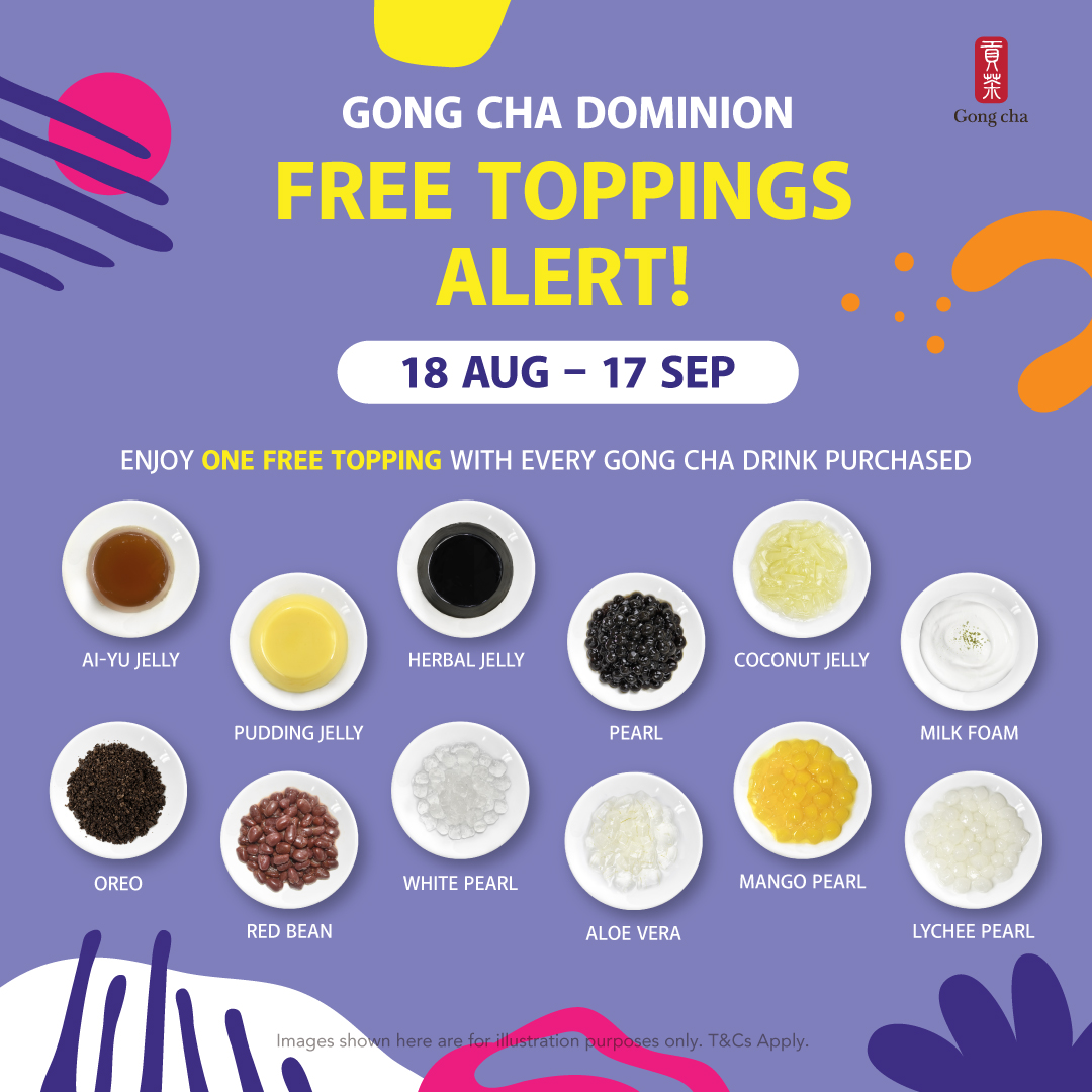 - This promotion is only valid at Gong cha Dominion from 18 August – 17 September 2023/