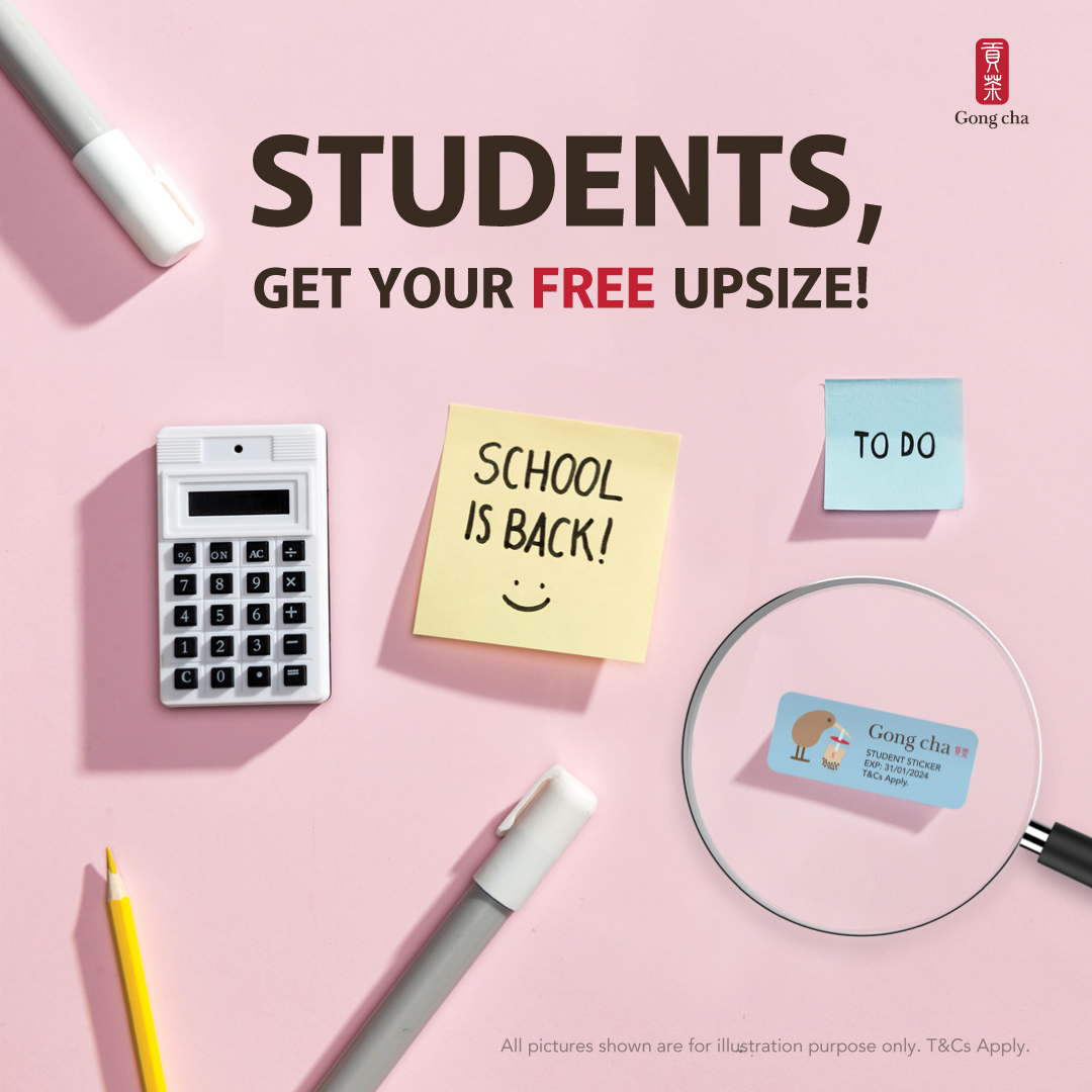 The offer starts from today. You will be able to get a FREE UPSIZE on every order, for the rest of the year, when you present your student ID card with the sticker! Tag your friends and better hurry before they are all gone! ????????????
