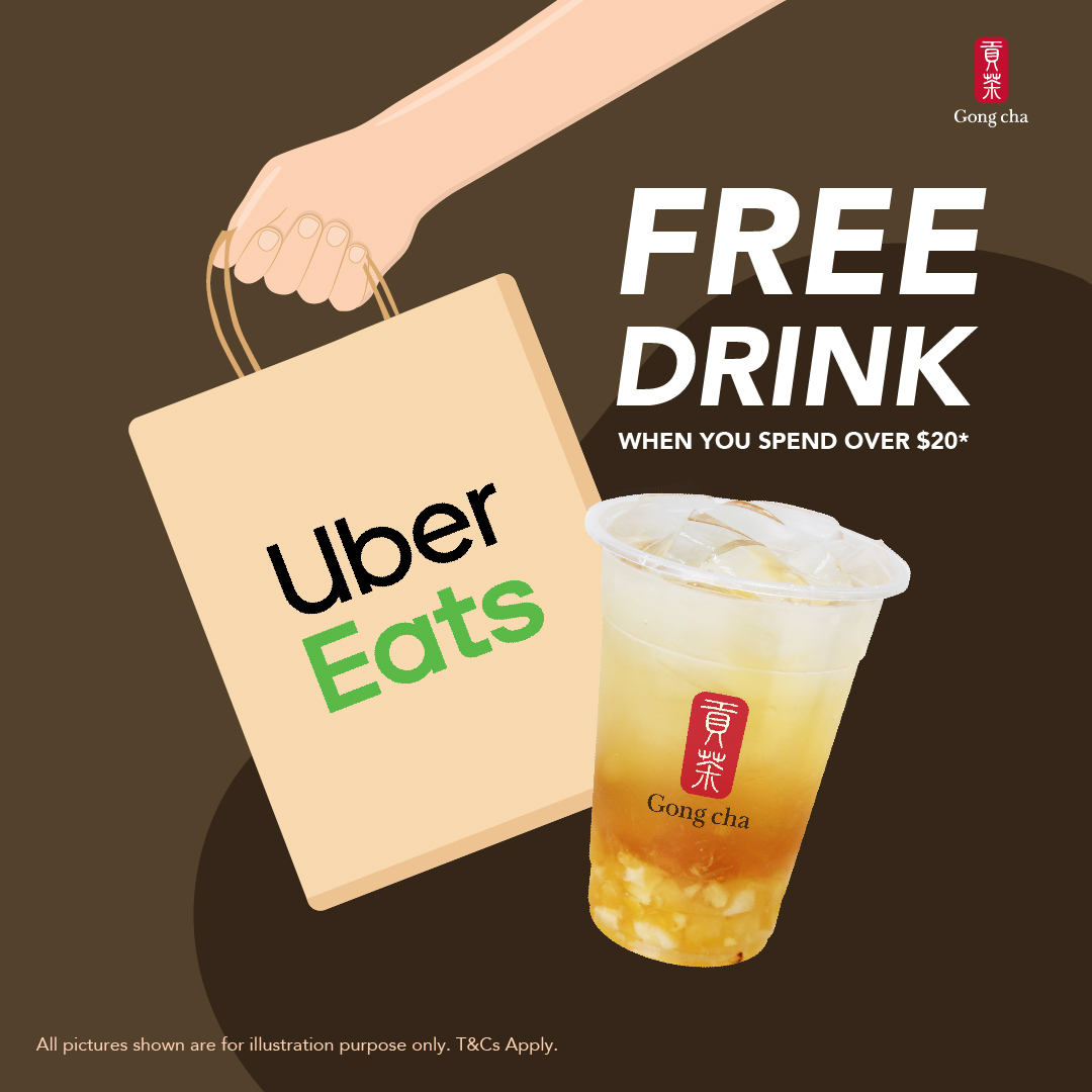From today, you can receive a free drink from us when ordering more than $20 of Gong cha on UberEats app.